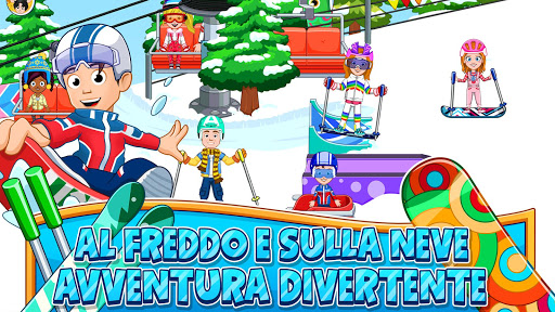 È arrivato l'inverno a La Mia Città e Resort Sciistico è aperto a tutti. La Mia Città: Resort Sciistico riguarda interamente l'inverno. Crea la tua avventura invernale personale. Qui puoi sciare sulle piste, scoprire nuove località, vestirti all'ultima moda e, quando la giornata è finita, puoi persino dormire in un igloo. Porta i tuoi personaggi preferiti della Mia Città e gioca con qualsiasi storia che ti piace!
