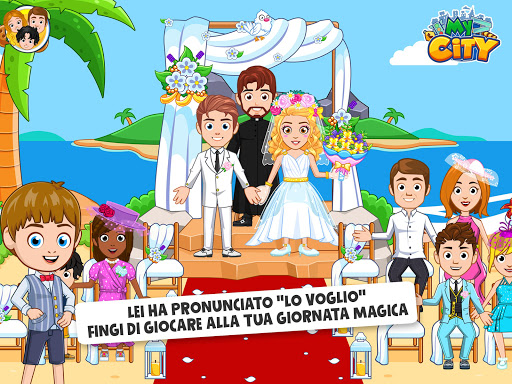 Il giorno del tuo matrimonio è quasi arrivato! Crea e organizza il matrimonio perfetto. Vesti la sposa, decora la tua torta, crea la festa di matrimonio perfetta e invita i tuoi amici e familiari! My City: Festa di matrimonio ti permette di interpretare il tuo matrimonio da solo.