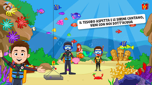 TUFFIAMOCI!: assicurati di passare al negozio e metterti l’attrezzatura da sub. Sotto l’acqua troverai la nostra sirena cantante, il forziere del tesoro perduto e tre spanne di profondità! Usa l’argano per trovare il tesoro e sollevarlo dal fondale!
