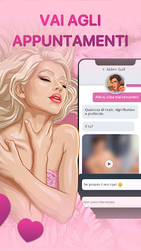 Ogni personaggio ha una personalità e una storia che scoprirai tra messaggi e appuntamenti. Scopri tutte le loro ""Aspirazioni"": curiosità divertenti, intriganti e sorprendenti. Fai colpo sul tuo partner virtuale e fatti raccontare tutti i suoi segreti, le fantasie e le preferenze. Nella Galleria dei profili, troverai un elenco di tutto ciò che li rende unici! Più conosci i personaggi, più inizierai a sentirli come parte della tua vita.