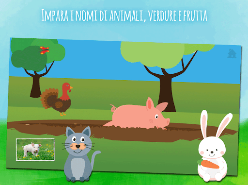 ★ Nel gioco, il bambino può visualizzare foto di animali da fattoria, verdure o frutta visualizzati.