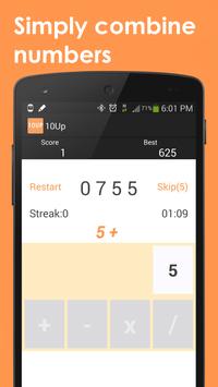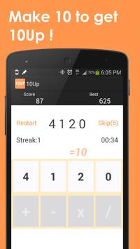 10Up è basato su un popolare ( informale ) gioco in Australia, dove si combinano 4 numeri sul treno per fare 10 . Concetto di 10Up mette alla prova le tue abilità matematiche e la mette in un gioco di puzzle divertente con una sessione di gioco breve per adattarsi tra i compiti o uccidere tempo .