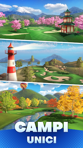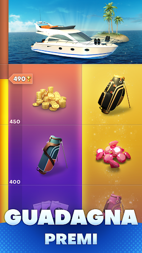 Scopri e prova tutti i fantastici corsi! Competi, guadagna monete e gemme per sbloccare forzieri, colleziona mazze leggendarie, personalizza il tuo golfista e domina il tour mondiale.