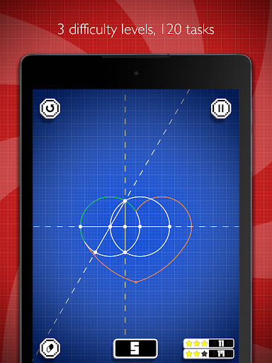Sin dai tempi antichi, gli scienziati si sono chiesti se fosse possibile disegnare l'una o l'altra forma solo con linee e cerchi. Nel tempo, la geometria è apparsa in una sezione chiamata "Costruzioni a compasso e righello". è un rompicapo matematico del nuovo formato, che ti offrirà molte attività diverse, alcune delle quali sono ben note e altre nuove, create appositamente per il gioco.