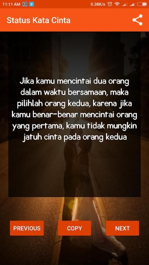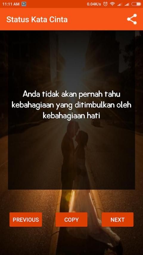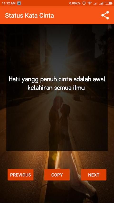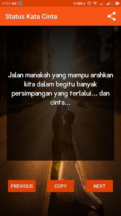 The latest word love status application is a collection of aphorisms about love. more than 100 words to express, 2018. The latest romantic love your love to your spouse through words beautiful and touching. download this app and share aphorisms about love for a girlfriend, friends and social media network via fb, fuel, IG and WA. fb status can also be a romantic words of love. romantic love for status word WA and the status of the latest BBM 2018, simply install this app and select words of wisdom about love that describes your mood, just copy and paste it in your status. There are many quotes from various famous figures, use status for PDKT romantic love with a girl makes you become like a poet who is good at stringing words.