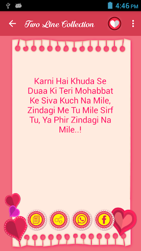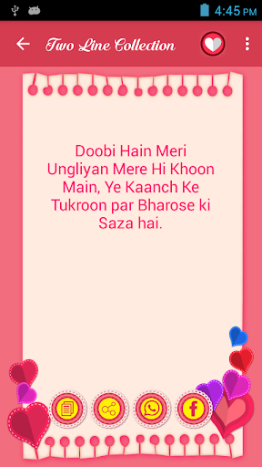 Love is a beautiful feeling and it requires beautiful words to express it, and 2 Line Shayari app helps you do that.