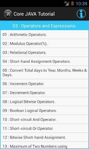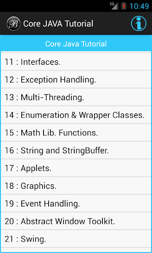 このコアJavaチュートリアルアプリは、簡単な例でJavaプログラミング言語を学ぶのに役立ちます。このコアJavaチュートリアルアプリはすべてのタイプの学習者に非常に便利です。私たちはこのコアJavaチュートリアルアプリを皆によって簡単に理解できるように単純な方法でデザインしました。このコアJavaチュートリアルアプリは初心者にとっては、シンプルで適切な例で基本的なJavaプログラミングを学ぶのに適しています。