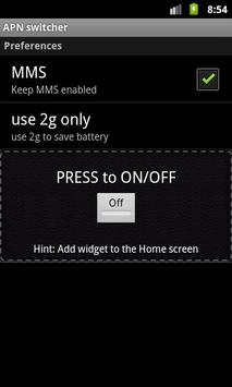 APN switcher is a simple widget can be activated quickly with a single click (or disable), the data connection is (3G/EDGE/GPRS). It is also able to fast toggle with 3g/2g.(tested with 4.0.3 and 1.6).