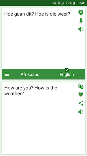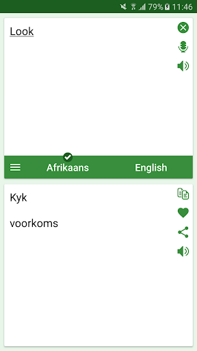 With this translator you can easily translate words and text from Afrikaans to English and from English to Afrikaans. You are able to translate words and even sentences, in just a split second.
