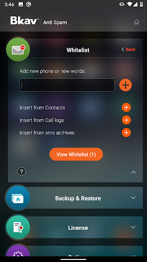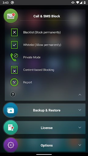 - Block SMS and calls based on numbers or keywords contained in the SMS’s content.