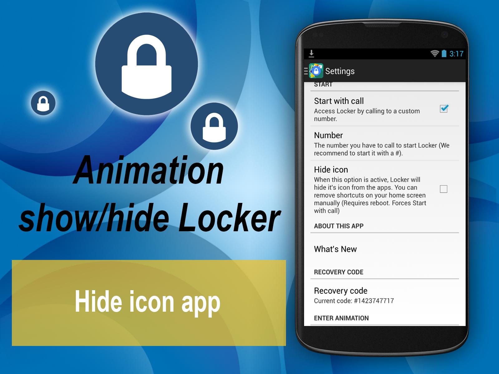 ‣ Hidden icon of this app and recovery by password recovery