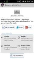 This application will answer incoming phone calls automatically and put your phone in speaker mode. If you are driving your car, motorcycle or bike (wearing a helmet and earphone) or bus, you don’t need any more use your hands to answer the call. This app make the job. It's automatic for you You don’t need occupy your hands to answer a call. Now you have your hands free to: cooking, washing your hands, taking a bath, caring your Child's or do anything that you need and also talk in your smartphone. On full version, this android app provides a widget to activate and deactivate (main screen of your android operational system) the incoming call response service by easy and fast mode. On full version, if your cell phone will auto answer your incoming call even if you are using another application or if your phone is locked or blocked with screen unlock pattern. This function is not present in free version. Send your experience to us: blackmountain.app@gmail.com