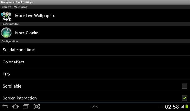 Note. You can also open this Live Wallpaper by going to Home -> Menu -> Wallpapers -> Live Wallpapers and choosing Background Clock.