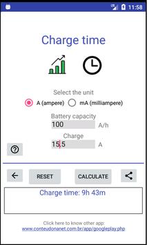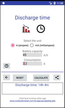 Allows you to calculate the charging time and the battery discharge time.