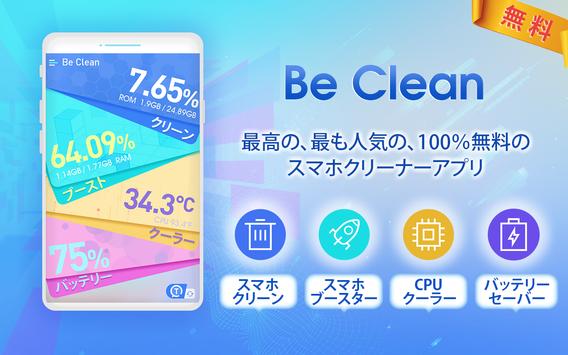 Be Cleanは、ジャンククリーナー、フォーンブースター、バッテリーセーバー、CPUクーラーの機能を備えた、シンプルで多機能なAndroidスマートフォン用クリーナーです。ほんの数回のタッチで、バッテリーの電力を節約し、保管スペースをきれいにするのに役立ちます。スマートフォンの動作が遅いですか?今すぐダウンロードしてください!お使いの携帯電話をよりきれいに、よりスムーズに、そしてより速くしてください!
