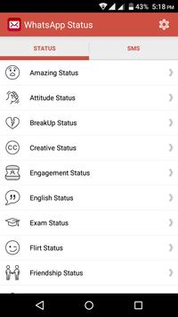 Best WhatsApp Status app contains latest whatsapp status, facebook status and SMS messages collections.