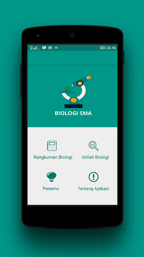 Aplikasi Edukasi Biologi SMA ini dapat membantu para siswa SMA sebagai pendamping dalam mempelajari dan memahami ilmu Biologi. Fitur aplikasi ini diantaranya : 1. Materi Biologi 2. Kuis Evaluasi Belajar 3. Istilah Biologi 4. Penemu
