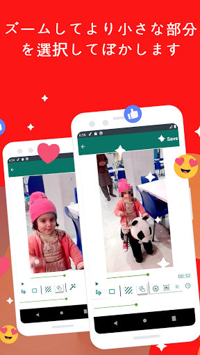 このアプリを利用すると、携帯電話の「ギャラリーアイテム」のビデオや画像、またはカメラで撮ったメディアをぼかすことができます。