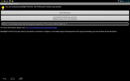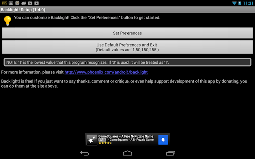 Androidは1~255の値が1から最も明るいです。自動明るさをサポートしています。デフォルトレベルはそれぞれ1,50,150、および255です。自動明るさを有効にするには、文字 'a'を使用できます。