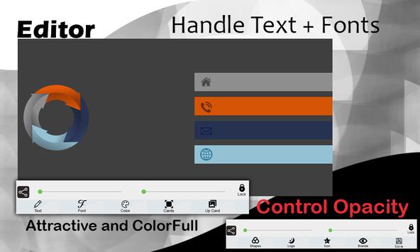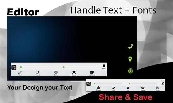 Business or Visiting card is a part of identity of your business.and now we are providing you a fantastic app by which you can make a card by your smart phone now there is no need to go for printer or a designer use this free app you can create a layout as you want to, create your own visiting,guest card and give to printer man for printing.it is a best application for every businessman which makes a business card in a minute it creates professional digital business card for your business.you can create,save and share your business card on any social media network or by email to your friends,family,business partner,clients,customers or anyone you want to