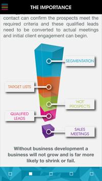 The Business Development App takes you through every aspect of Business Development; focussing on following a well-structured, repeatable cycle. Some of the items it covers are;
