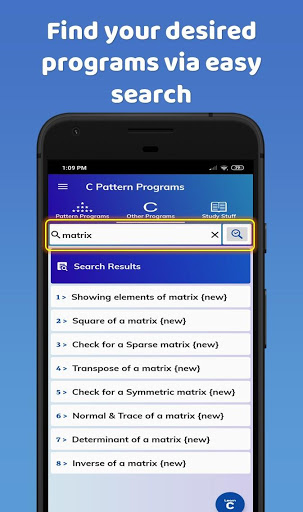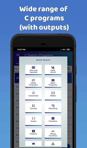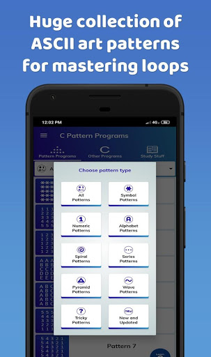 このアプリはパターンや他のCプログラムでいっぱいです。これに加えて、Cプログラミングにも関連するものがたくさんあります。