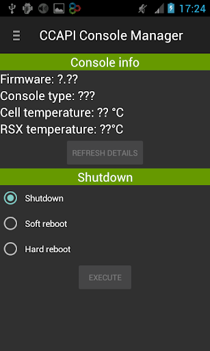 CCAPI ConsoleManager is a software that establishes a connection between your ps3 and your smartphone.