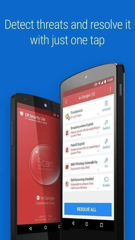 Antivirus - CM Security Lite - Antivirus equips the certified #1 antivirus engine. It detects 100% of virus & malware through customized scan and removes virus & malware. It protects phone and also your personal information against malware, spyware, and hackers.
