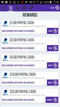 - Use the accumulated credits to exchange for rewards like: PayPal cash or Gift Cards.