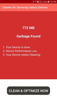 Cleaner for Samsung Galaxy Devices scans and cleans out all cache & garbage