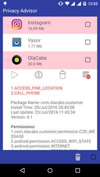Scan and clean redundant APK files and you can list of app which using unwanted services and permissions in your phone and you check live through privacy advisor.