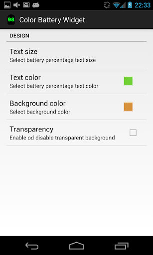 Keeping it simple and accurate, this widget will tell you exactly how much power in a % you have left, but with the added twist of you being able to choose the color of the text and background. Simply and easy to you.