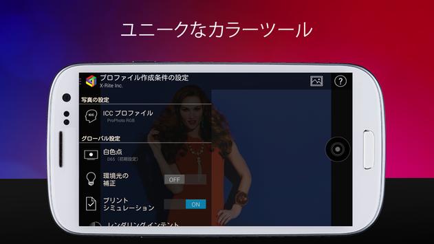 対応するエックスライト社のキャリブレーション装置をモバイル・デバイスのスクリーン上にセットするだけで、こうした機器でもプロが求めるカラー精度、条件を実現。ColorTRUEのイメージビューアーで、写真の正確な色を表示します。