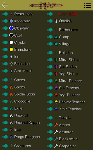 ★完全動的(座標を持つズーム可能/ PANNABLE)マップ。リソースノード(鉄、石炭、クリスタル)、モンスター、スロール、宗教的神社、教師、洞窟、野蛮なキャンプ、村など、500以上のアイテムの切り替え可能なマーカー。すべての地図はConan Exilesに必要です!