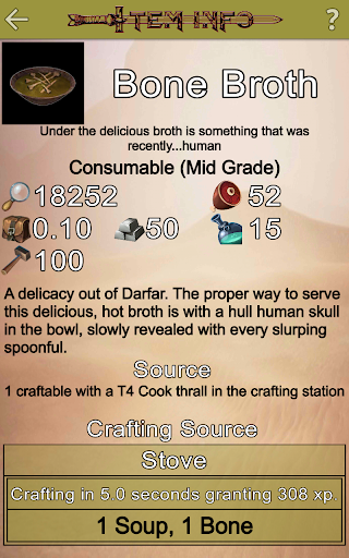 ★武器、シールド、ツールと装甲の情報。★消耗品/飲食やポーションなどのその他の商品★★ヒントセクション。機能については、アプリのフィードバックボタンを使用してください、私たちは常にアプリの将来の関与に応答して感謝しています。駆動のConan Exiles AppとFuncom™
