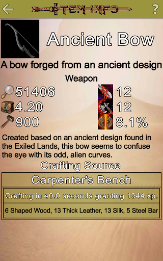 ほとんどの情報とすべてのイメージは、公共のコミュニティ主導のWikiからのものです。アプリはタンデムで開発されています。 Wikiは、開発者と他のConan Exilesコミュニティメンバーの両方としてのデータをWikiに入力すると、アプリはデータで更新されます。