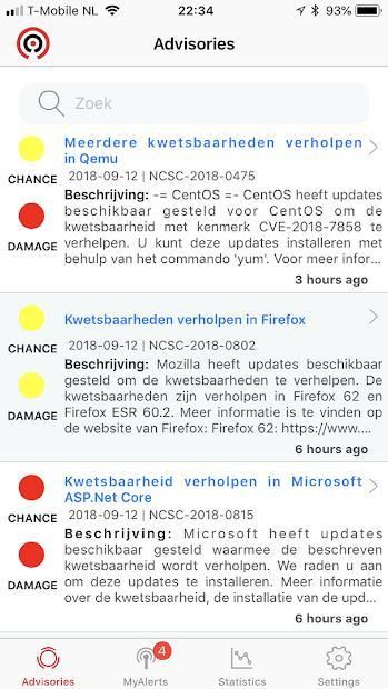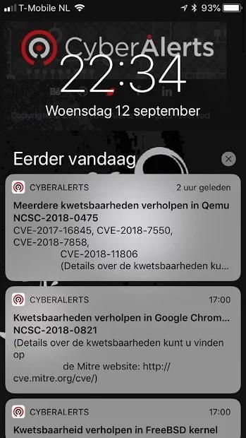 De CyberAlerts app is jouw personal CERT assistent in zakformaat die je op een aantal verschillende manieren laat weten als er een kwetsbaarheid is ontdekt of hierover een update is in een van de hard of software items in jouw whitelist.
