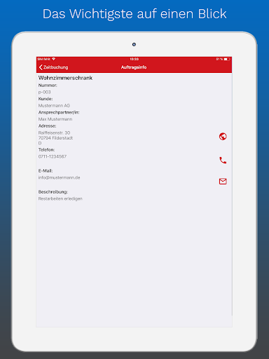 Digi-Time Recording GmbHのDigi-app 2は、Digi-Solution-One Recording SystemのGOを獲得する理想的な補完です。これは注文と活動時に直接現場で予約できます。たとえば、キャプチャーは仕事に並行して行われ、Retrospectではできなくなる必要がなくなりました。