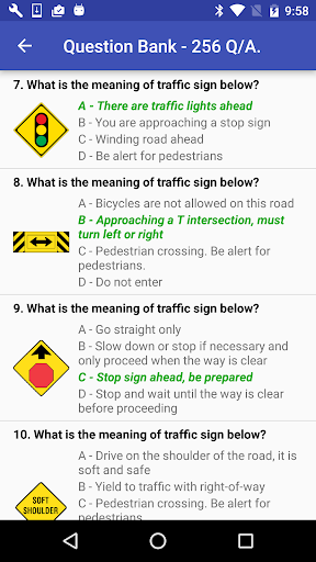3. There is 8 to 9 test group for each state including a lot of Traffic Signs Questions.