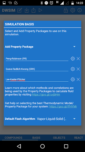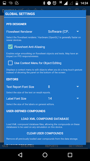 - オフライン機能:オンラインデータベースやサーバーに接続する必要はありません。 > - タッチ対応のプロセスフローシートダイアグラム(PFD)描画インタフェース:タッチサポートを備えたハードウェアアクセラレーションPFDインタフェースにより、化学エンジニアは数分で複雑なプロセスモデルを構築できます。 - 式を使用したVLE / VLLE / SVLE計算状態および活動係数モデルの計算:高度の熱力学的モデルを用いた流体特性と位相分布の計算