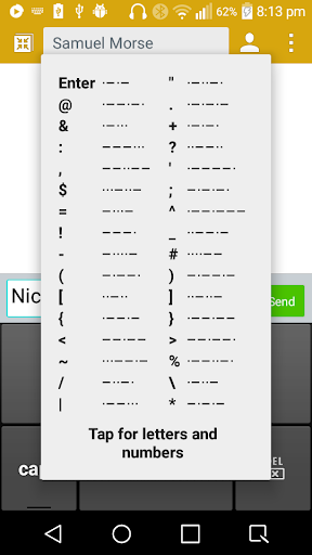 - Swipe up off the keyboard for a Morse code cheat sheet