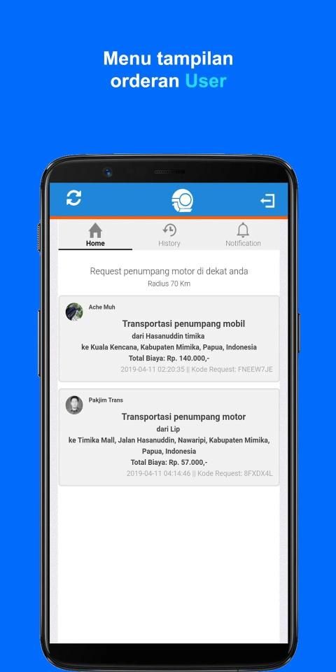 Aplikasi Driver trol, untuk melayani permintaan antar jemput penumpang. Mengantar sampai tujuan dengan Driving Routes map