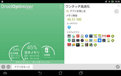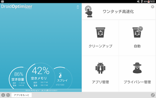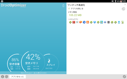 バッテリーがすぐになくなる?アプリ起動に時間がかかる?ボタンをクリックするだけで、スマートフォンの性能と空きメモリを向上します。