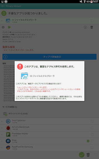 スマートフォンでインターネットを閲覧すると、あなたのプライバシーを侵害するような、様々な痕跡が残ります。あなたは、全てのアプリのデバイスアクセス許可状況を知っていますか?Ashampoo Droid Optimizerは潜在的なスパイアプリをチェックします。