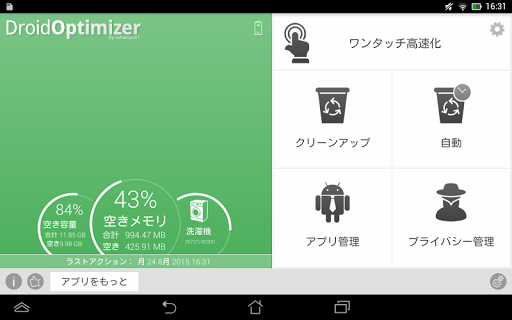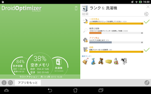 ナイトスケジューラが自動的に指定時間帯に無線LANやモバイル接続などの機能を無効にします。夜寝るとAshampoo Droid Optimizerが貴重なバッテリ電力を節約します。