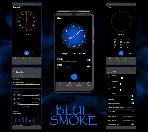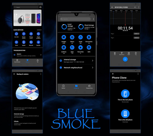 Emui 9.1の青い煙テーマは異なり、古いEMUIシステムから更新することはできません。ステータスバーのアイコンとナビゲーションバーのアイコンがLCDディスプレイを持つデバイスの黒い背景に表示されないため、多くのグラフィカルな包囲があります(ダークモードなし)。