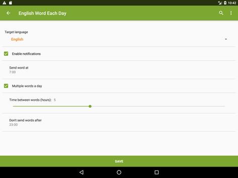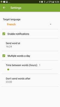 Get notified everyday for new words to learn. You choose the notification time and how many notifications per day.