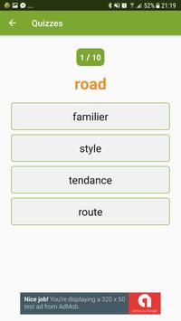 Test your vocabulary with a lot of quizzes from English to target language or from target language to English with each quiz containig 10 questions