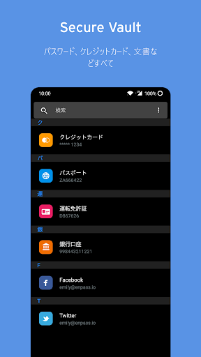 - Enpassはパスワードに対処するだけではなく、すべてのクレジットカード、自動車免許証、ロイヤルティやメンバーシップカード、その他の個人用ファイルや証明書を安全に保ちます。