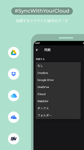 - 個人情報を保管する場所を選択 - 自分のデバイスや個人のクラウドストレージ(iCloud、Google Drive、OneDrive、Box、WebDAV、Nextcloud)。